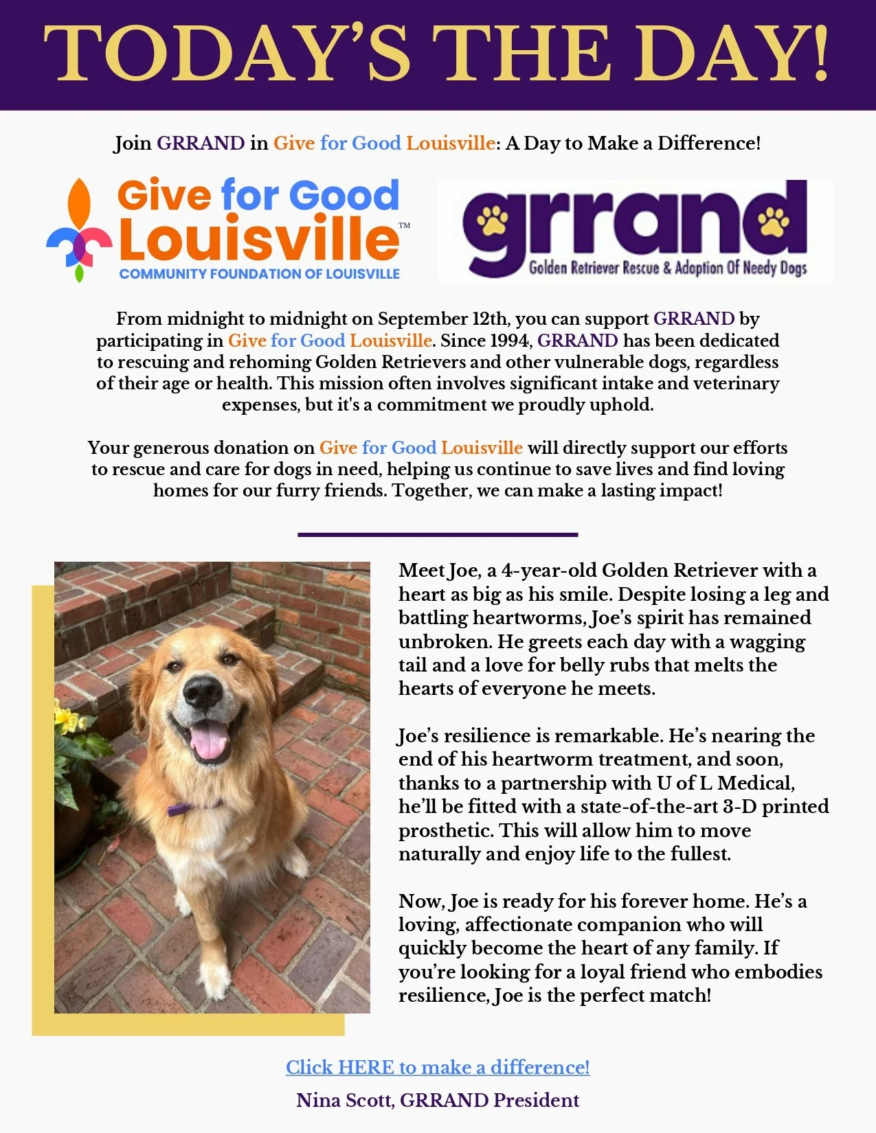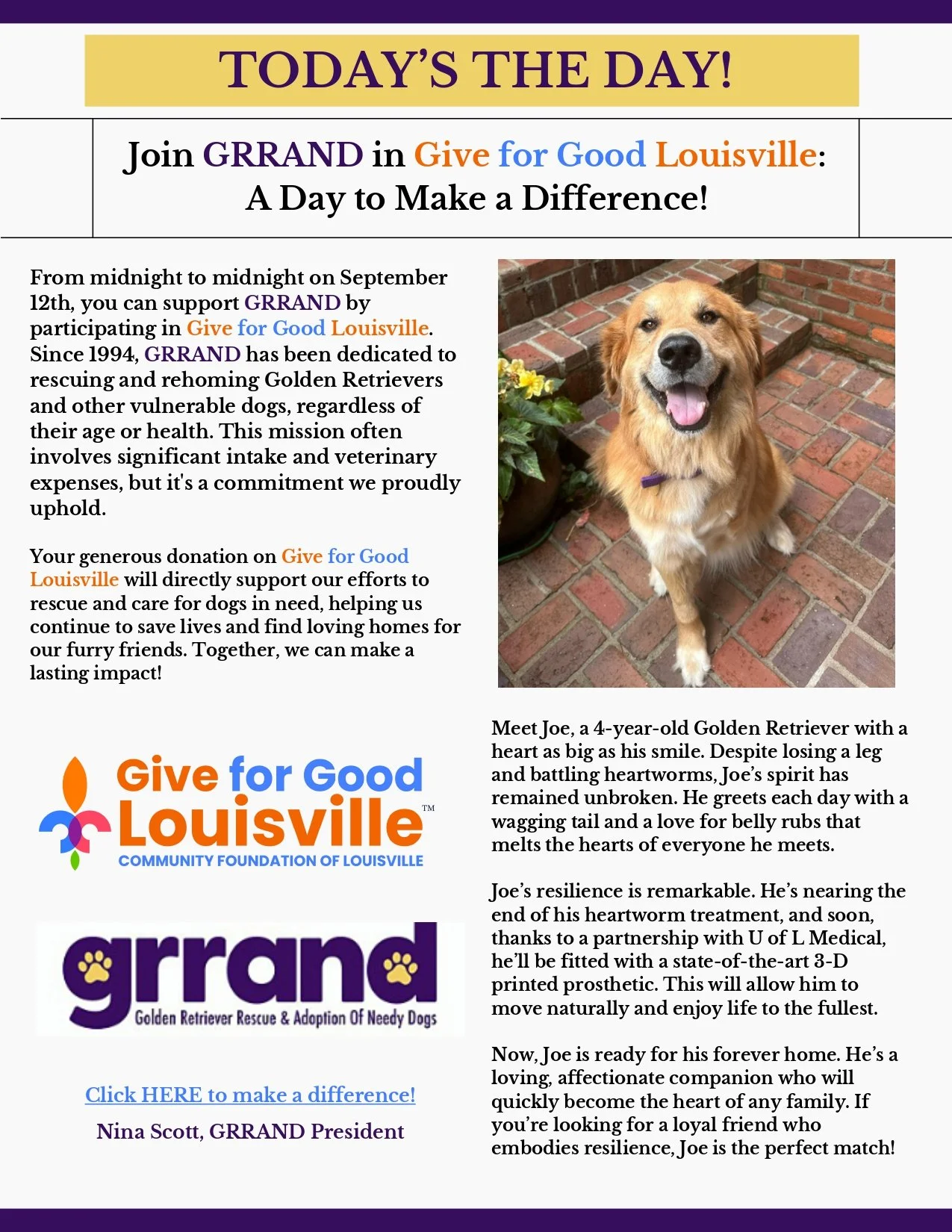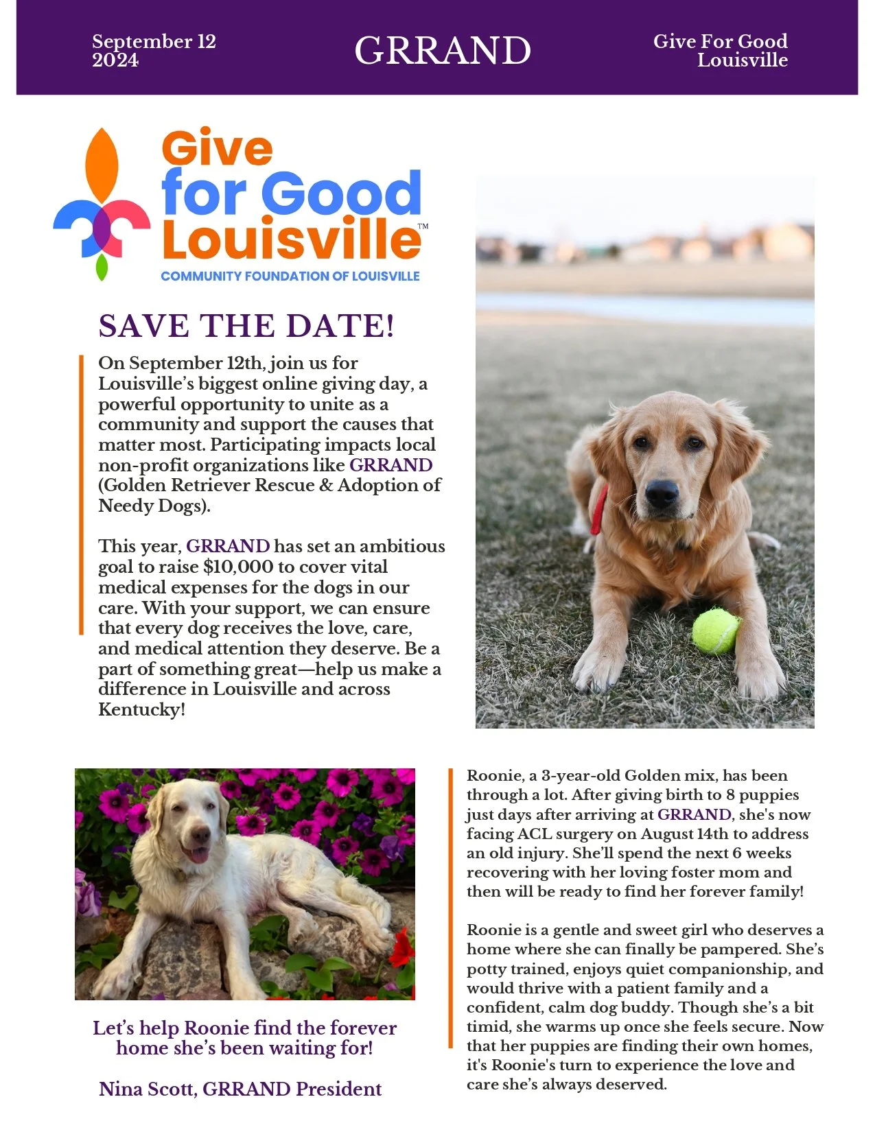 I contributed to the design and communication efforts for GRRAND's newsletter, enhancing its marketing impact and community engagement by donating to Give For Good Louisville.