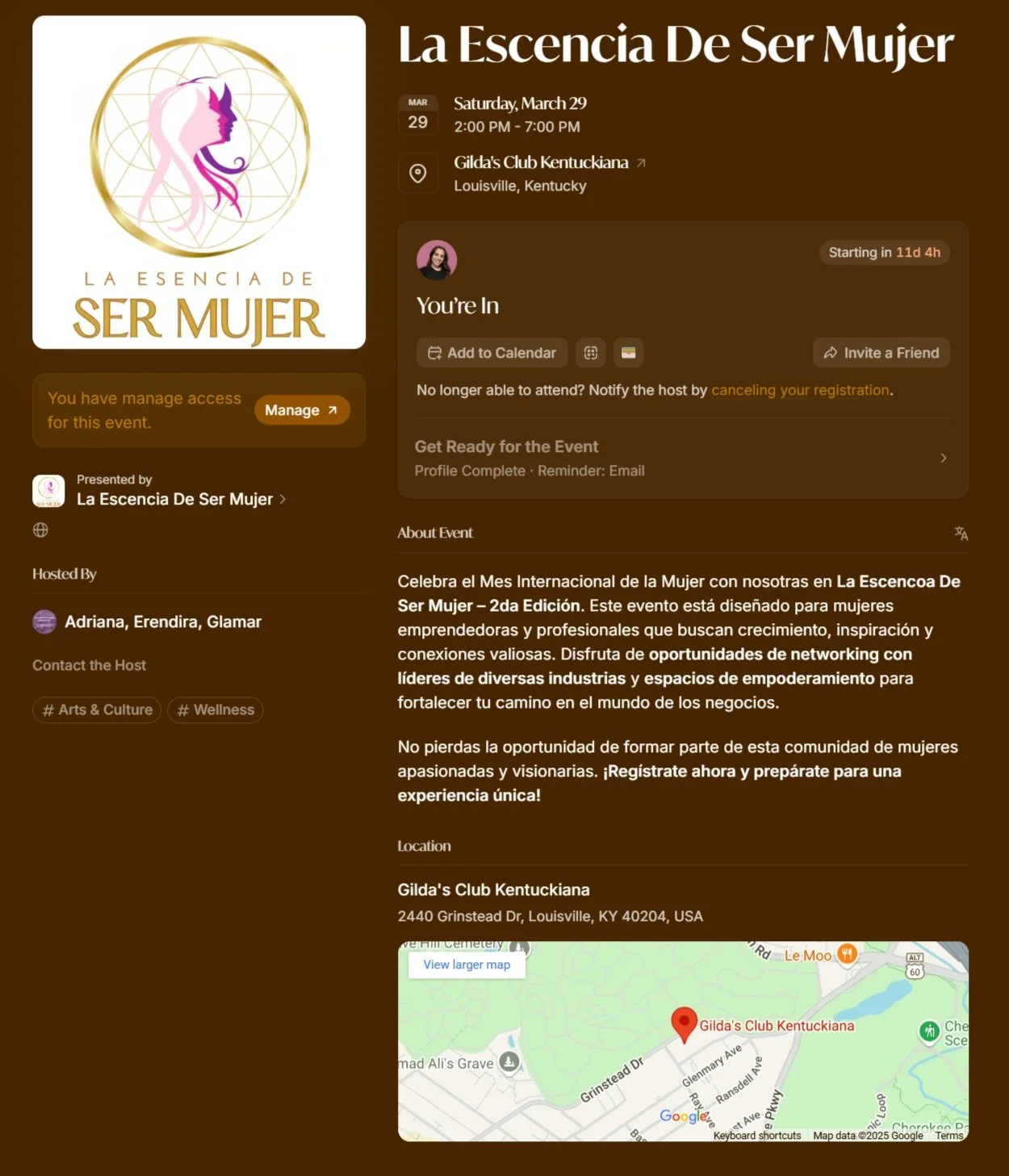 La Esencia de Ser Mujer is a transformative event designed to empower Latina women by fostering meaningful connections and inspiring personal and professional growth. In its second edition, this gathering creates a supportive space where women can share experiences, network, and uplift one another. It’s a celebration of resilience, ambition, and the essence of womanhood.